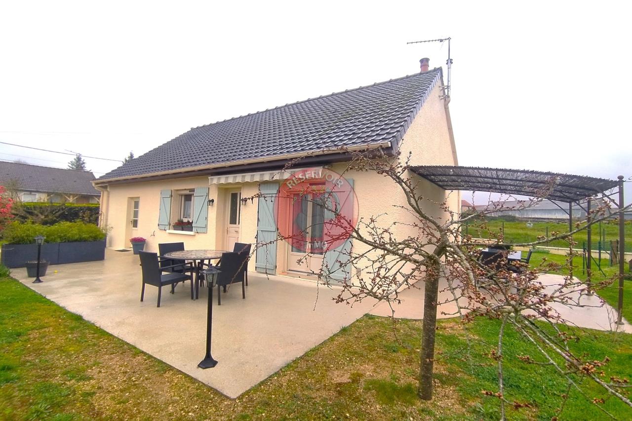 MAISON DE PLAIN PIED A VENDRE - A 15 MIN DE MONTBARD. Belle maison de plain pied entièrement rénovée comprenant : salon-séjour avec cuisine américaine et poêle à pellet, deux terrasse de plain pied. Deux chambres, salle d'eau, buanderie et dégagement. Garage attenant, deux abri de jardin et terrain autour. Le tout construit sur un terrain clos de 882 m². Dans un village au calme à 1H de Paris Gare de Lyon et 40min de Dijon. Classe énergie D. Honoraires agence inclus à la charge du vendeur. Les informations sur les risques auxquels ce bien est exposé sont disponibles sur le site Géorisques. Mandat 25612 - Réservoir Immo Agence de Montbard Christian GOUTTENOIRE (N°814220091)